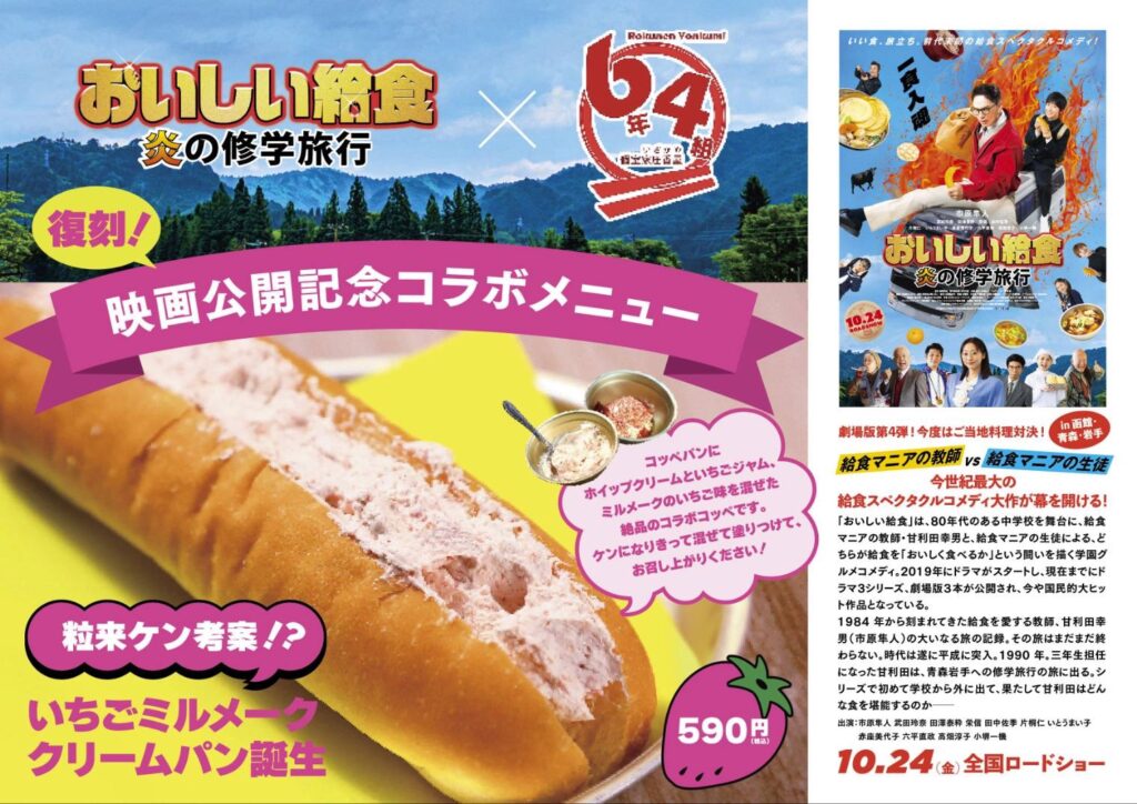 粒来ケン考案!?「いちごミルメーククリームパン」登場! 昭和の懐かしい給食の味をテーマにした人気シリーズ『おいしい給食』の最新映画「炎の修学旅行」公開を記念して、居酒屋「6年4組」とのスペシャルコラボが実現しました! 今 […]